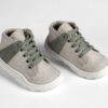 Μποτάκι περπατήματος σε μπεζ ύφασμα και καφέ καστόρ δέρμα everkid Α539Ε.