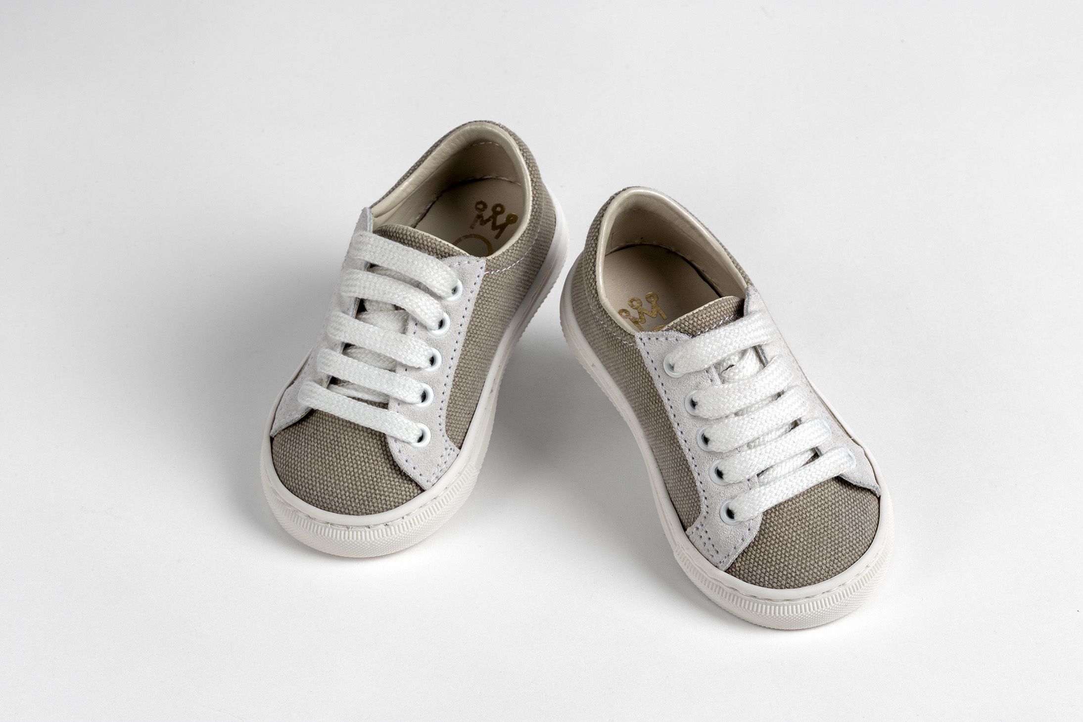 Sneaker περπατήματος σε λευκό δέρμα και μπεζ καμβά everkid Α533Ε.