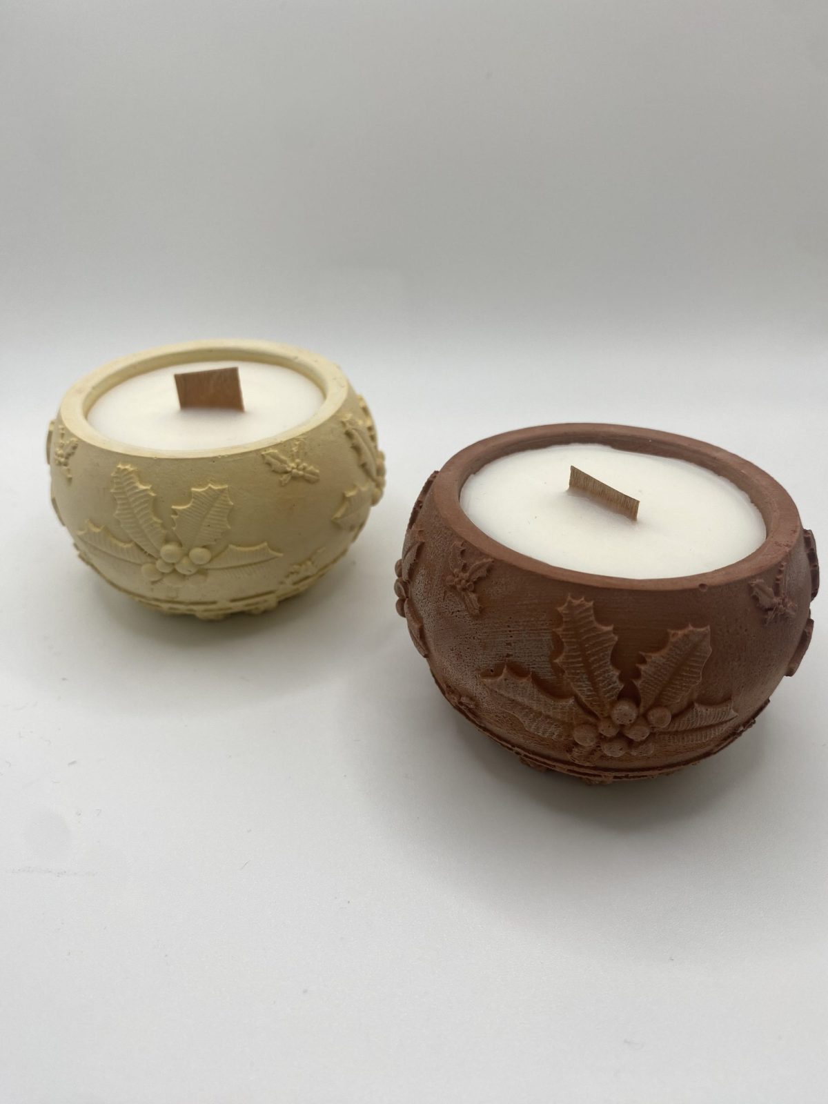 Αρωματικό κεράκι σόγιας σε χειροποίητο πορσελάνινο διακοσμητικό βαζάκι σε Χριστουγεννιάτικο σχέδιο και παλ αποχρώσεις.