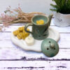 Αρωματιστής καύσης wax melts, αρωματικών πλακετών και ελαίων σε σχήμα κανάτας με καπάκι. Η κάθε συσκευασία συνοδεύεται από ένα αρωματικό ρεσώ και ένα wax melt με το ίδιο άρωμα.