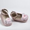 Μπαλαρίνα αγκαλιάς από dusty pink δέρμα everkid Κ2216Ρ, διακοσμημένη με σατέν νούφαρο, πέρλα και φτερά, κλείσιμο με Velcro στον αστράγαλο.
