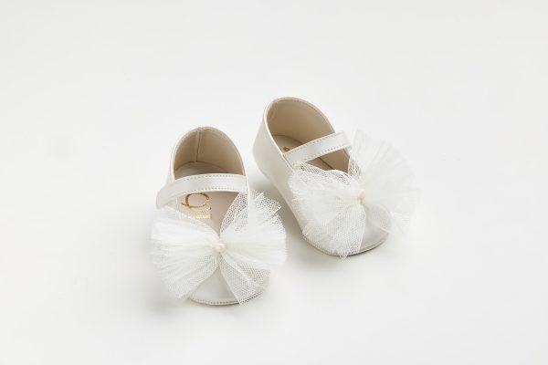 Μπαλαρίνα αγκαλιάς τεχνόδερμα με χειροποίητο τούλινο φιόγκο σε off white K602A everkid