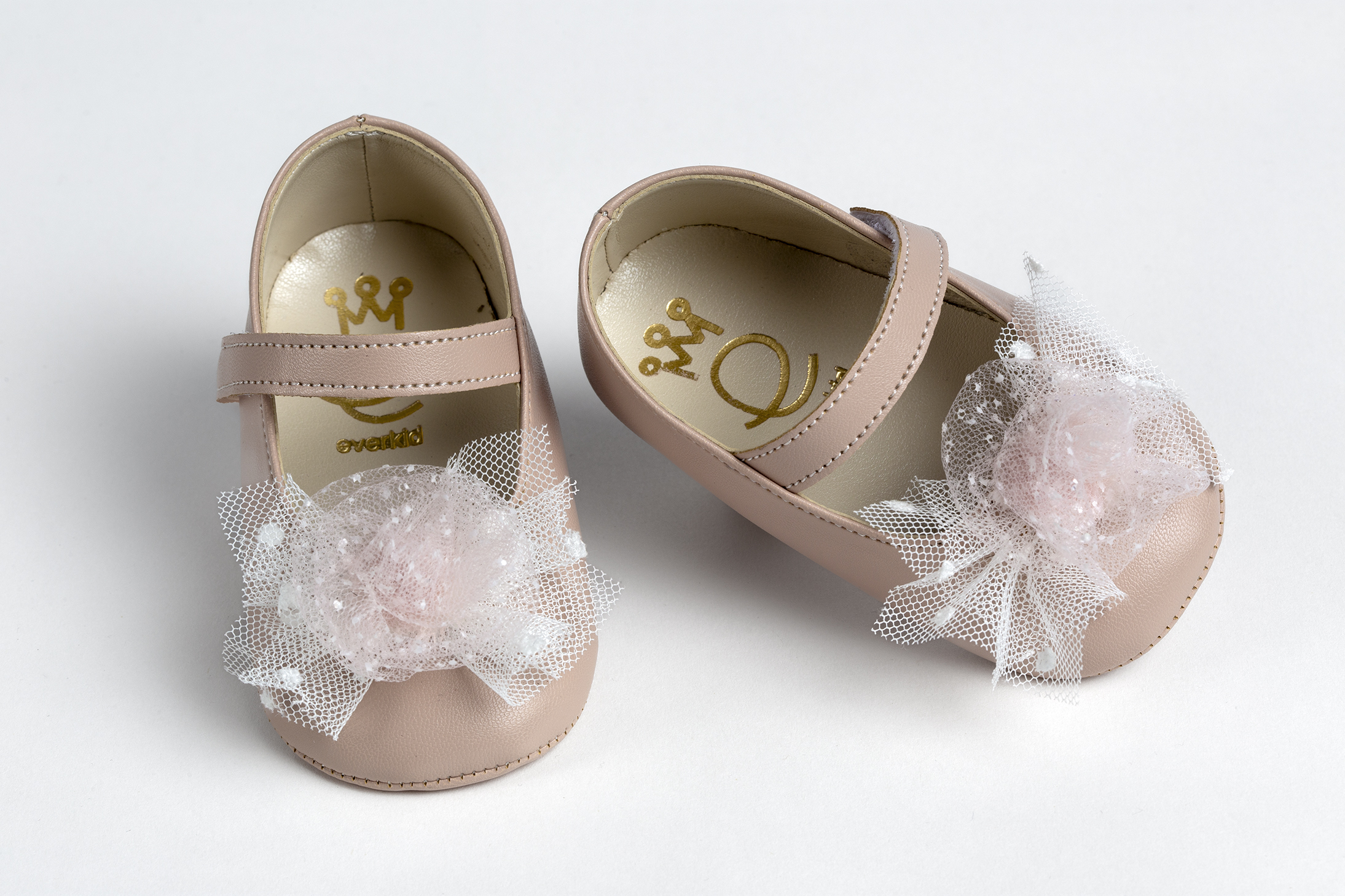 Μπαλαρίνα αγκαλιάς σε ροζ τεχνόδερμα με τούλινο διακοσμητικό σε ροζ και λευκό everkid Κ516Ρ.