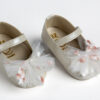 Μπαλαρίνα περπατήματος από εκρού δέρμα διακοσμημένη με σομόν glitter τούλι και μουσελίνα.