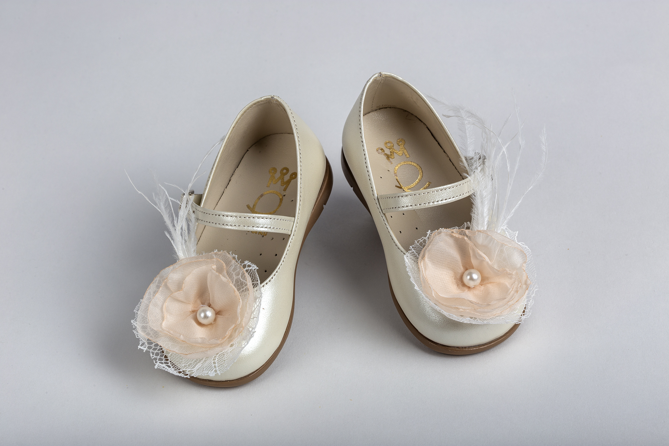 Μπαλαρίνα σε εκρού με σομόν λουλούδι everkid Κ570Ε