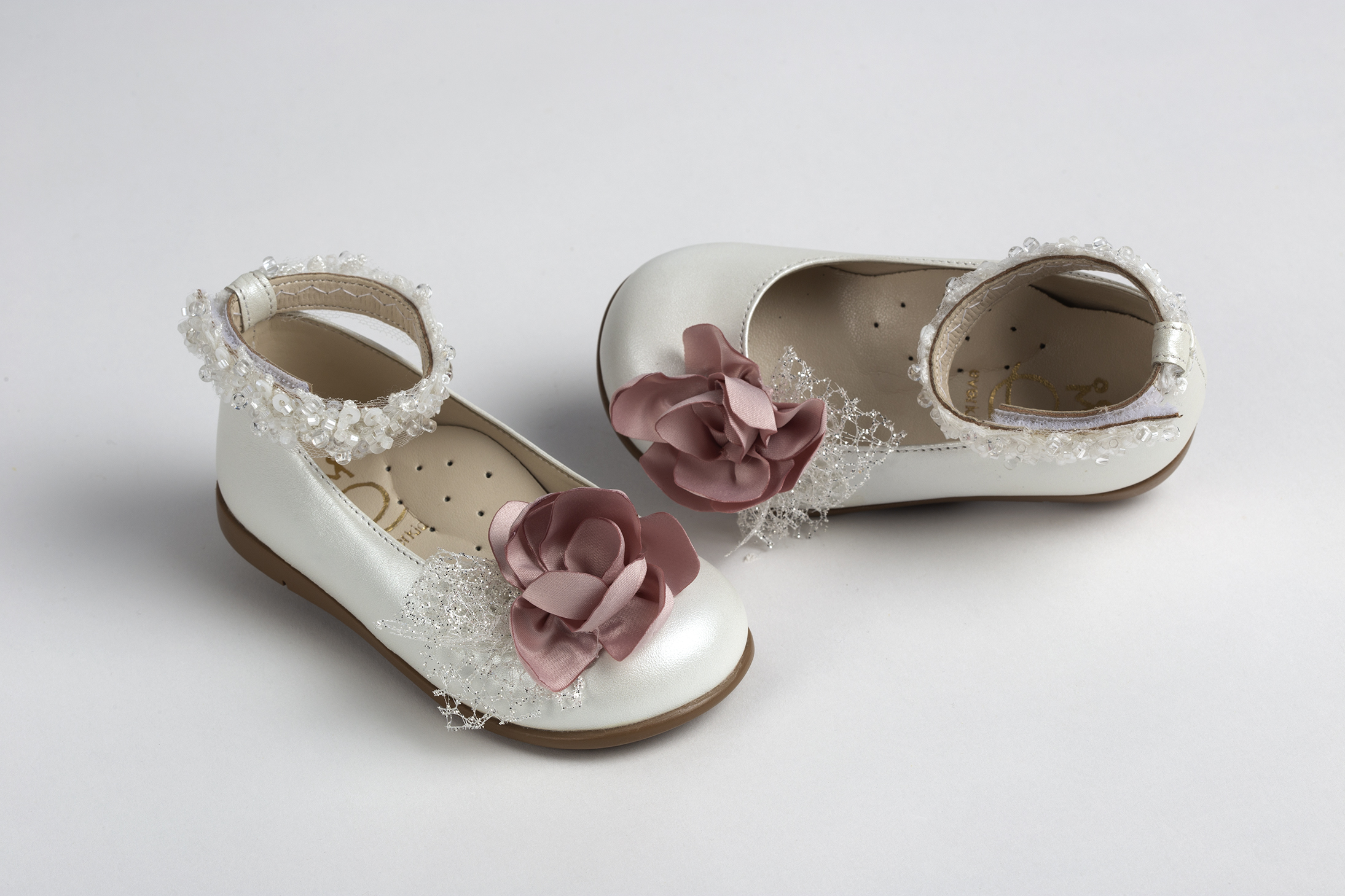 Μπαλαρίνα περπατήματος σε εκρού με λουλούδι everkid Κ591Ε