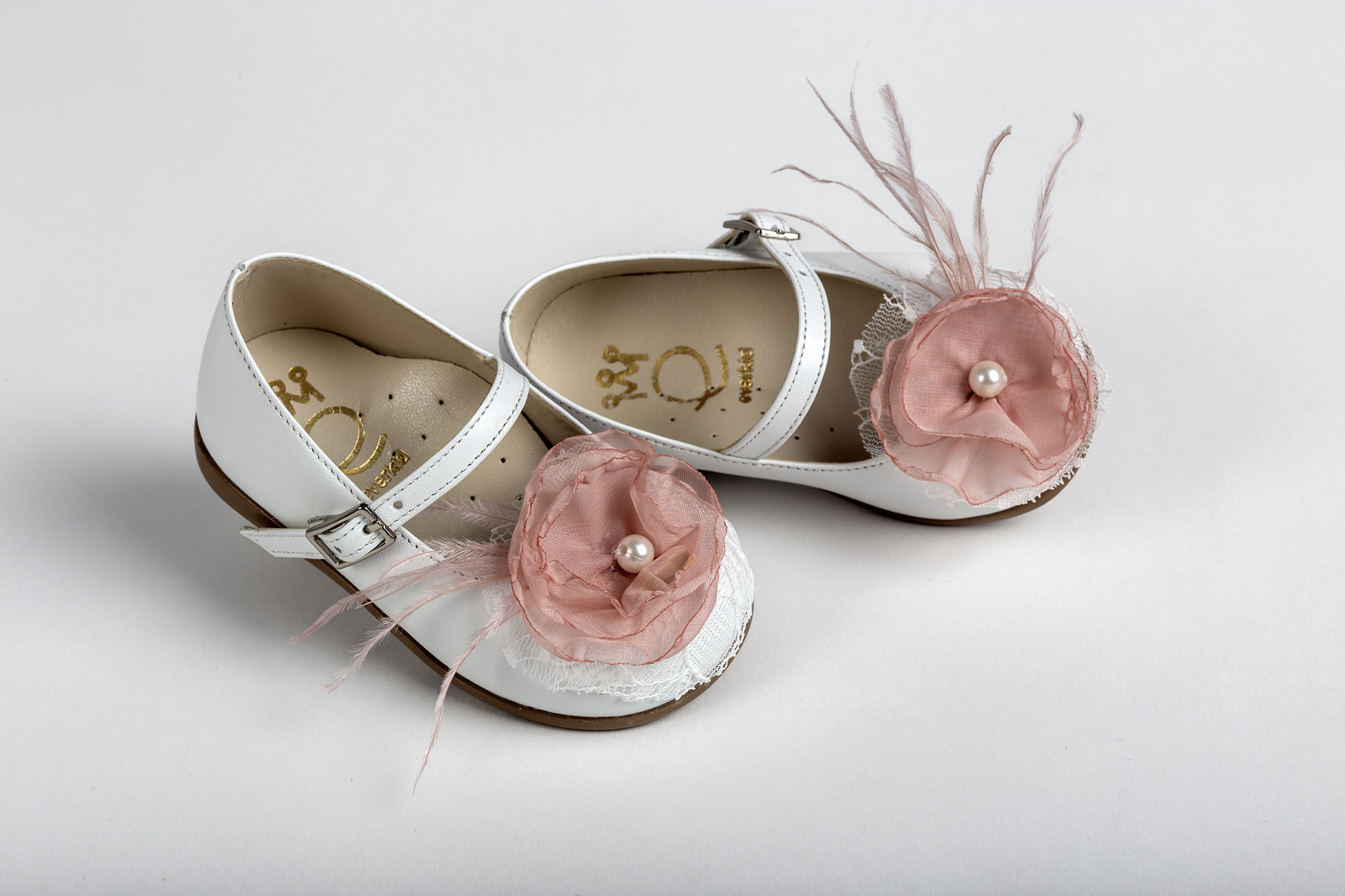 Μπαλαρίνα σε λευκό δέρμα με dusty pink λουλούδι everkid Κ570Α