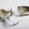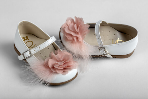 Μπαλαρίνα περπατήματος σε λευκό τεχνόδερμα διακοσμημένη με λουλούδι και φτερό σε dusty pink everkid K564A.