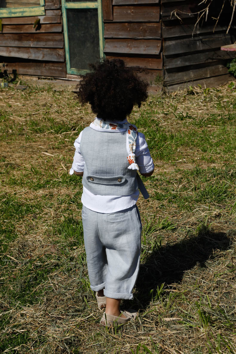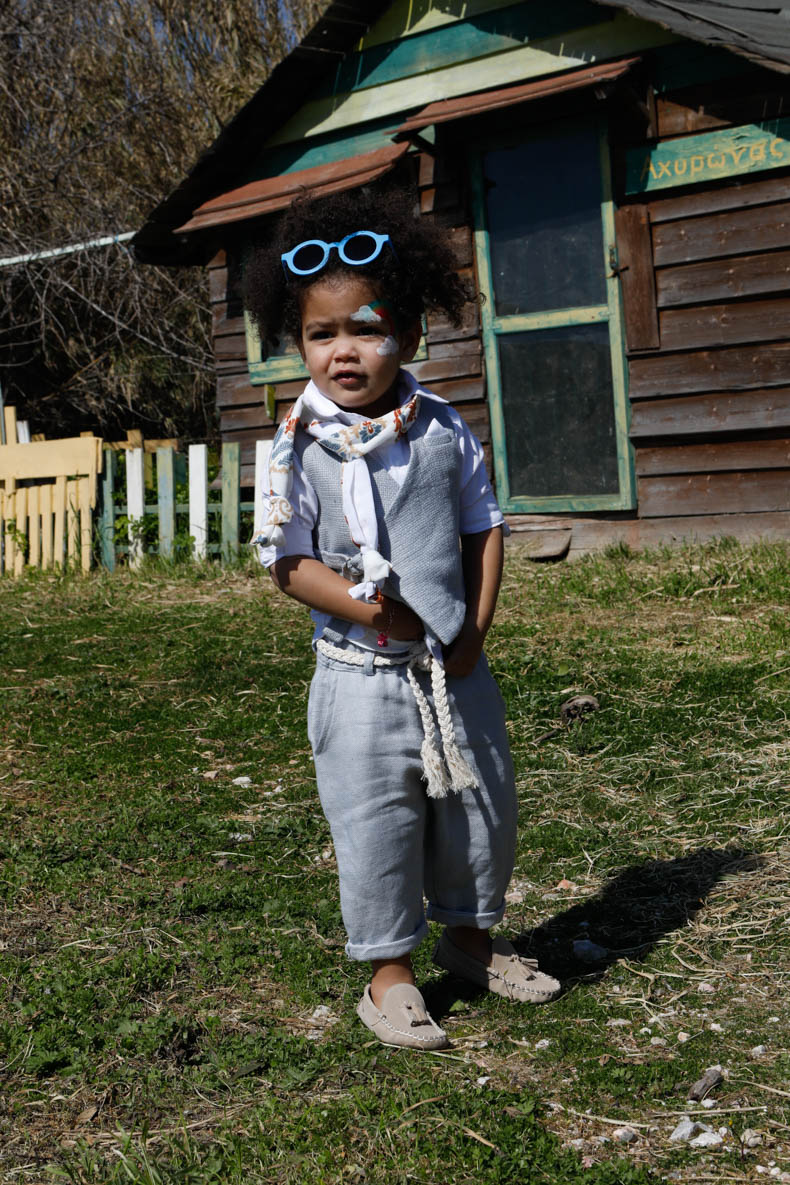 Ο Pasxalis είναι ένα elephant κοστούμι που θα σας εκπλήξει. Γιλέκο από 100% ψάθα Ιταλίας με ιδιαίτερο πατρόν. Πουκάμισο λευκό με printed λευκό πουά από 100% cotton. Παντελόνι elephant ψαροκόκκαλο Ιταλίας. Ζώνη πλεξούδα από κορδόνι εκρού. Καπέλο με εκρού πλεξούδες και χάντρες. Φουλάρι soft touch cotton με printed σχέδιο boho.