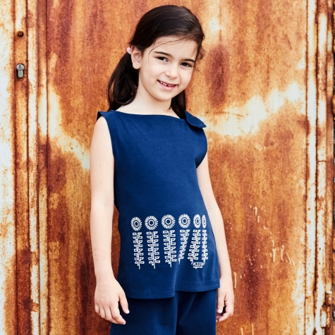 Μπλούζα “Sunflowers” σε σκούρο μπλε χρώμα και φιόγκο στον ώμο από 100% οργανικό βαμβάκι KEEN organic
