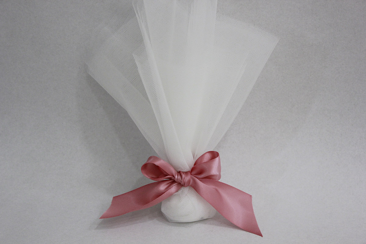 Μπομπονιέρα γάμου από 3 τούλια και σατέν κορδέλα σάπιο μήλο.