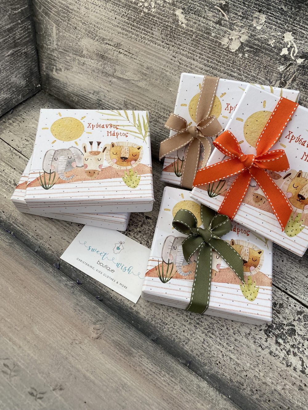 Μπομπονιέρα βάπτισης με θέμα ζωάκια της ζούγκλας.