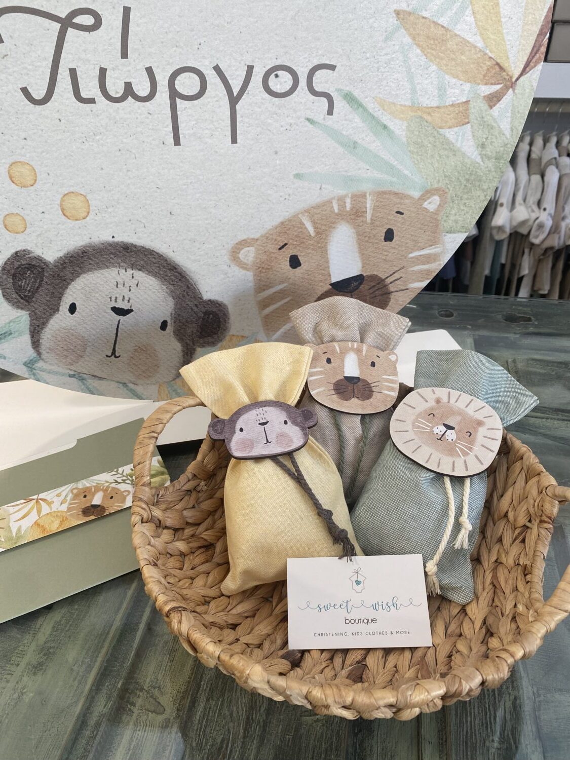 Μπομπονιέρα βάπτισης με ξύλινο ζωάκια της ζούγκλας