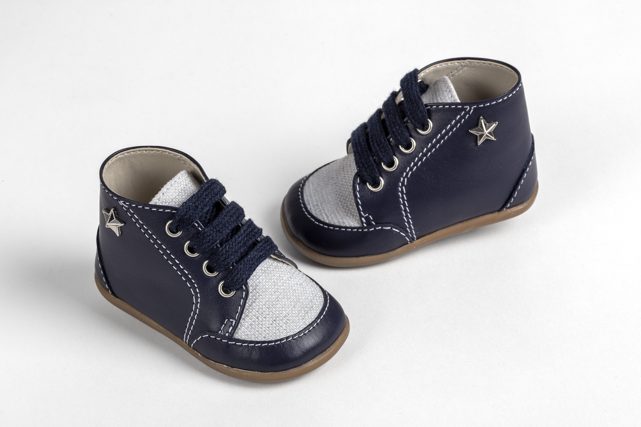 Μποτάκι για τα πρώτα βήματα σε μπλε δέρμα και γκρι ύφασμα everkid Α524Μ.