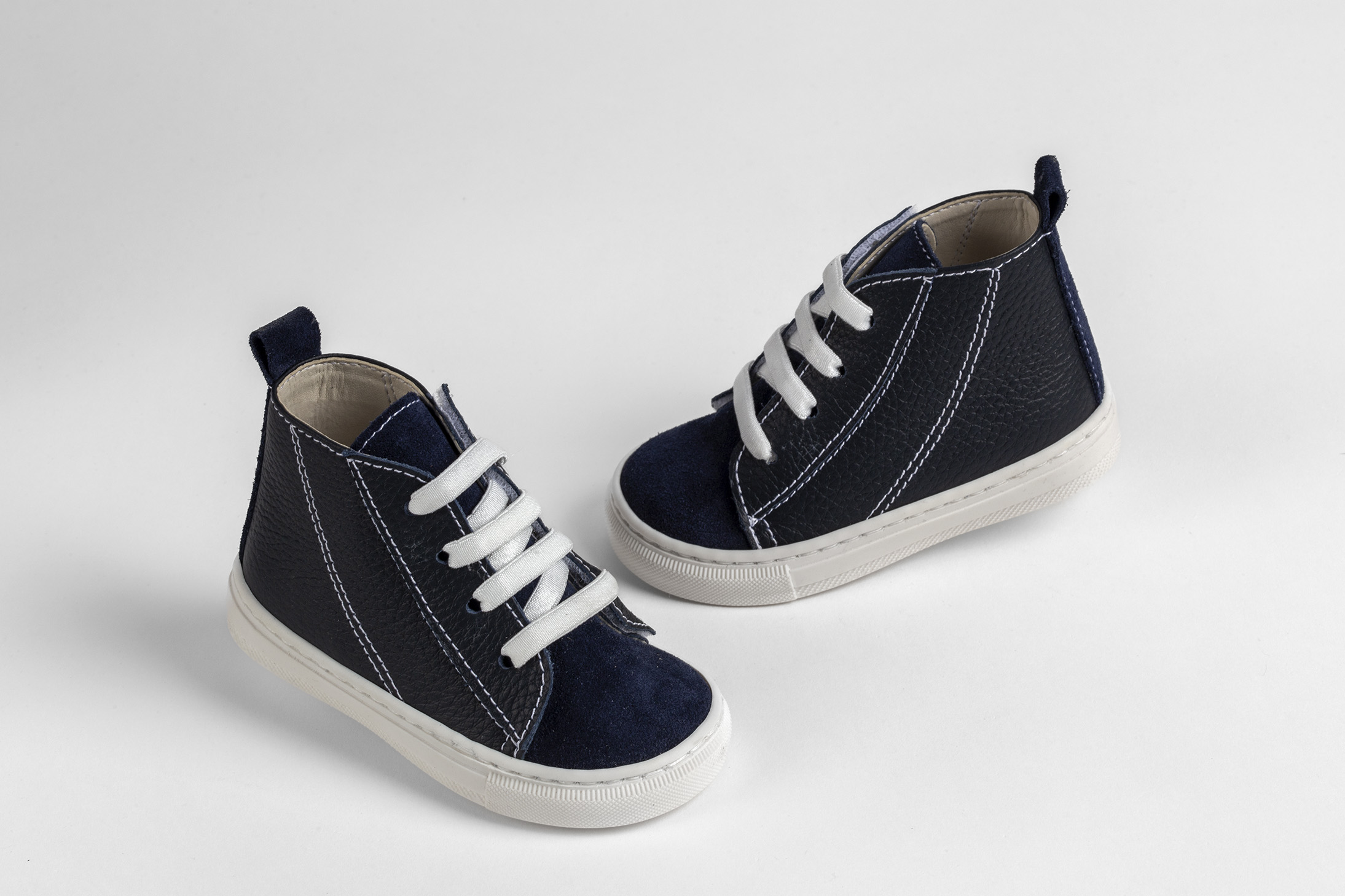 Μποτάκι περπατήματος σε μπλε λείο και καστόρ δέρμα everkid Α540Μ.