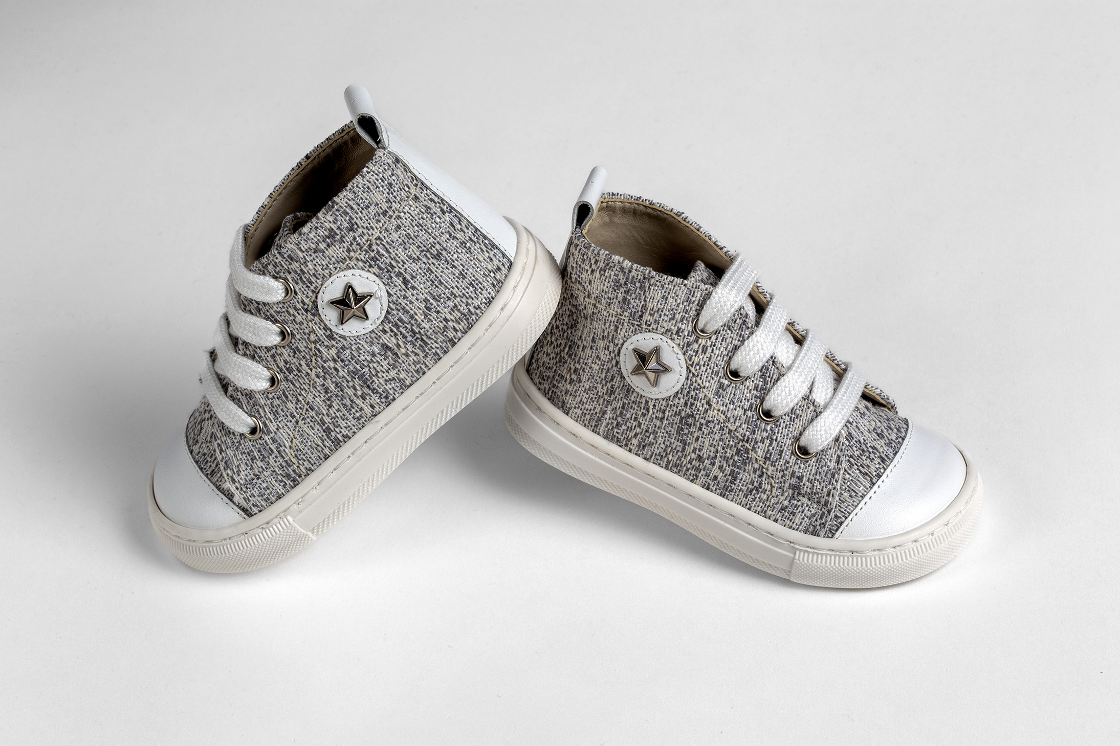 Μποτάκι περπατήματος σε γκρι ύφασμα και λευκό δέρμα everkid Α538Α.
