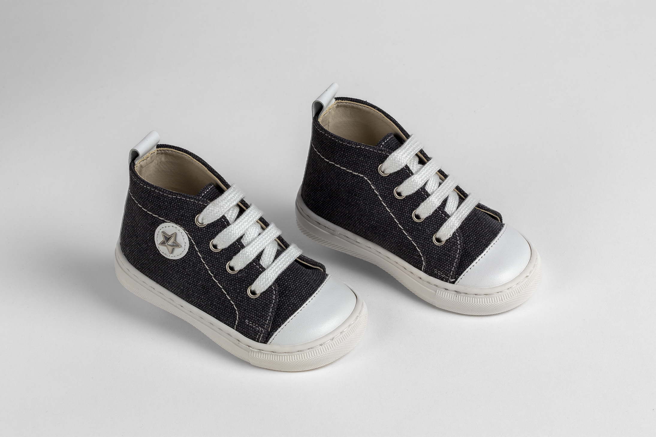 Μποτάκι περπατήματος σε μαύρο καμβά και λευκό δέρμα everkid Α536M.