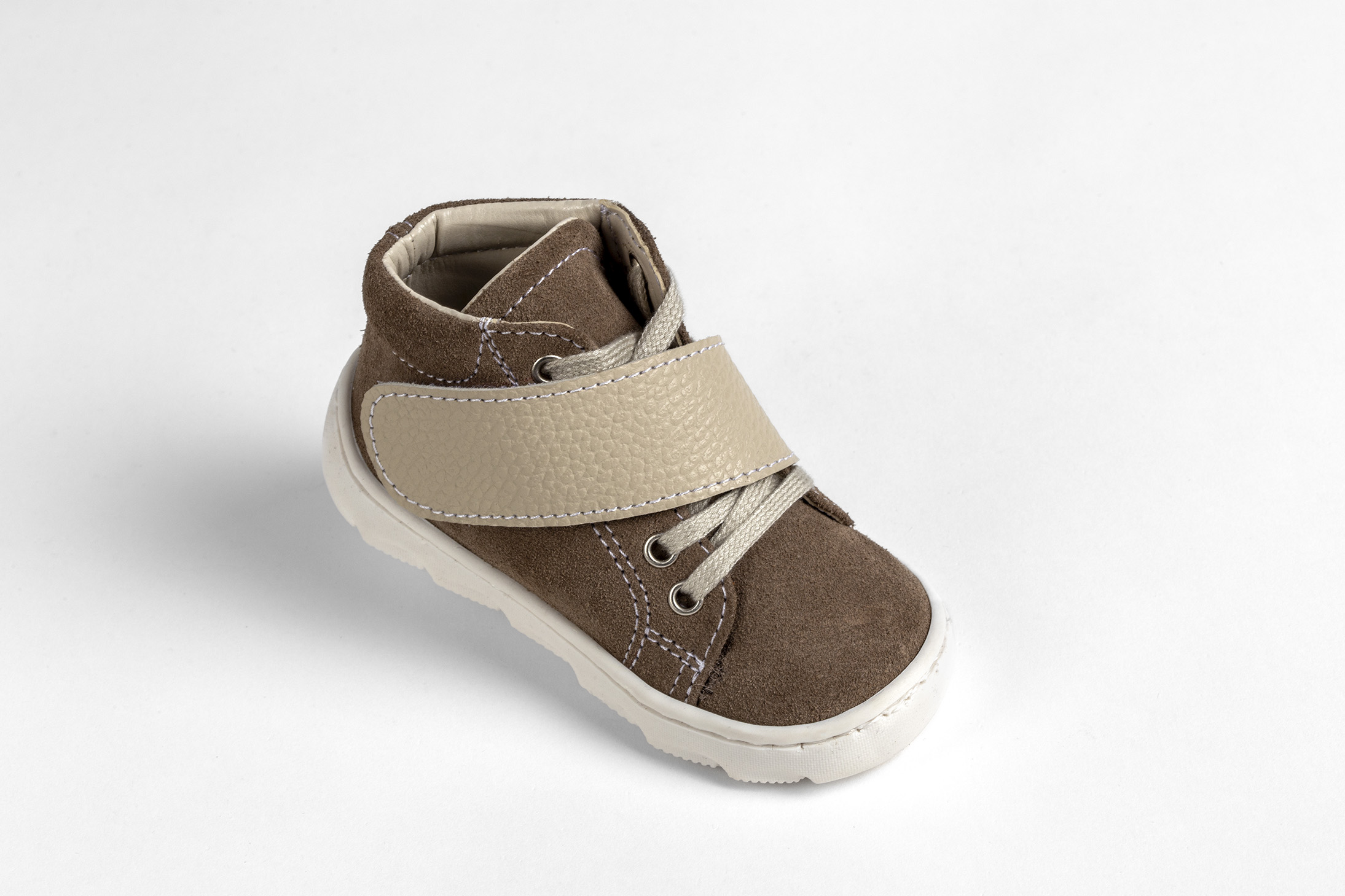 Μποτάκι περπατήματος σε πούρο καστόρ και μπεζ λείο δέρμα everkid Α541Ε.