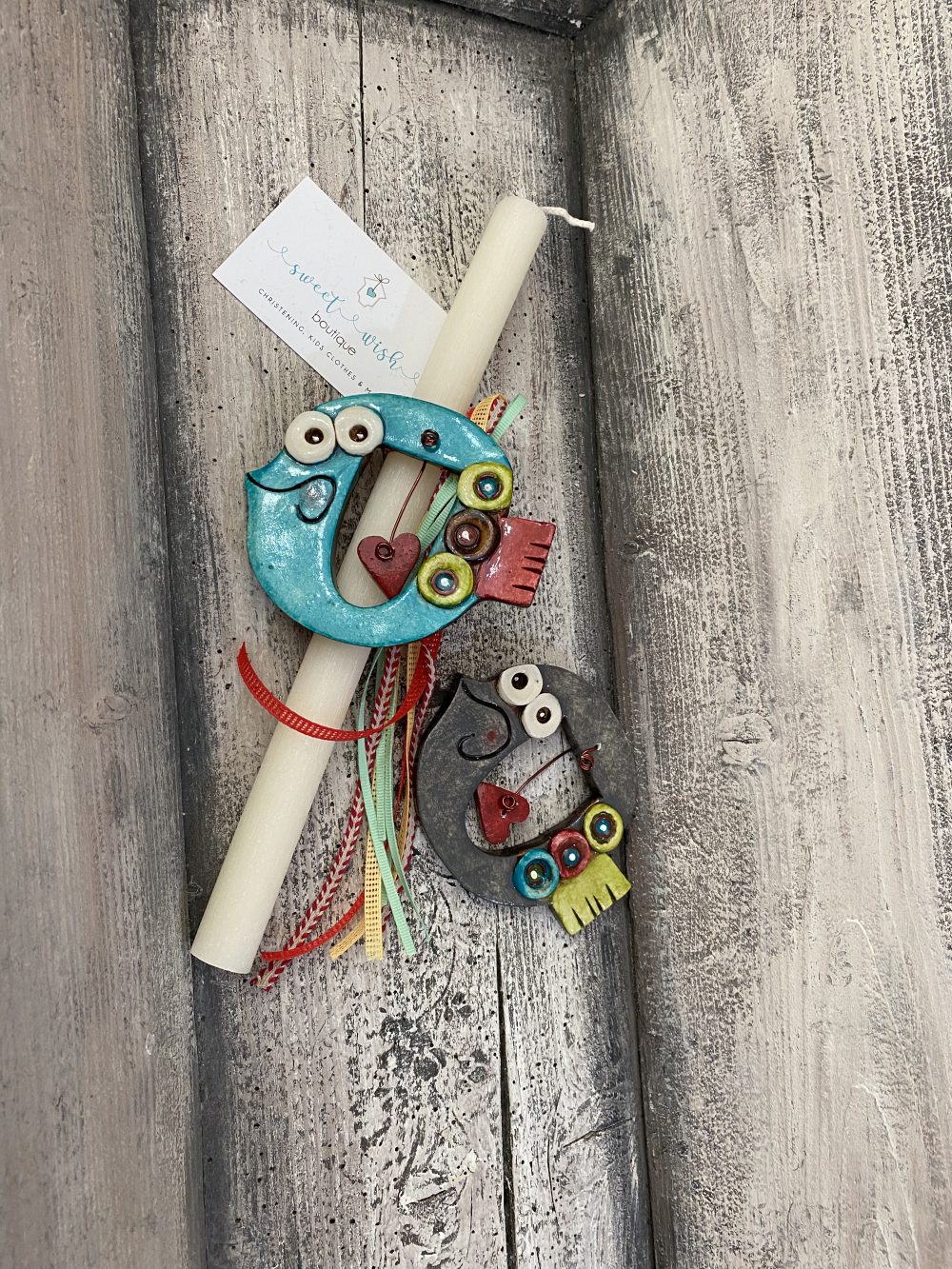 Χειροποίητη αρωματική λαμπάδα με funky κεραμικό ψαράκι.