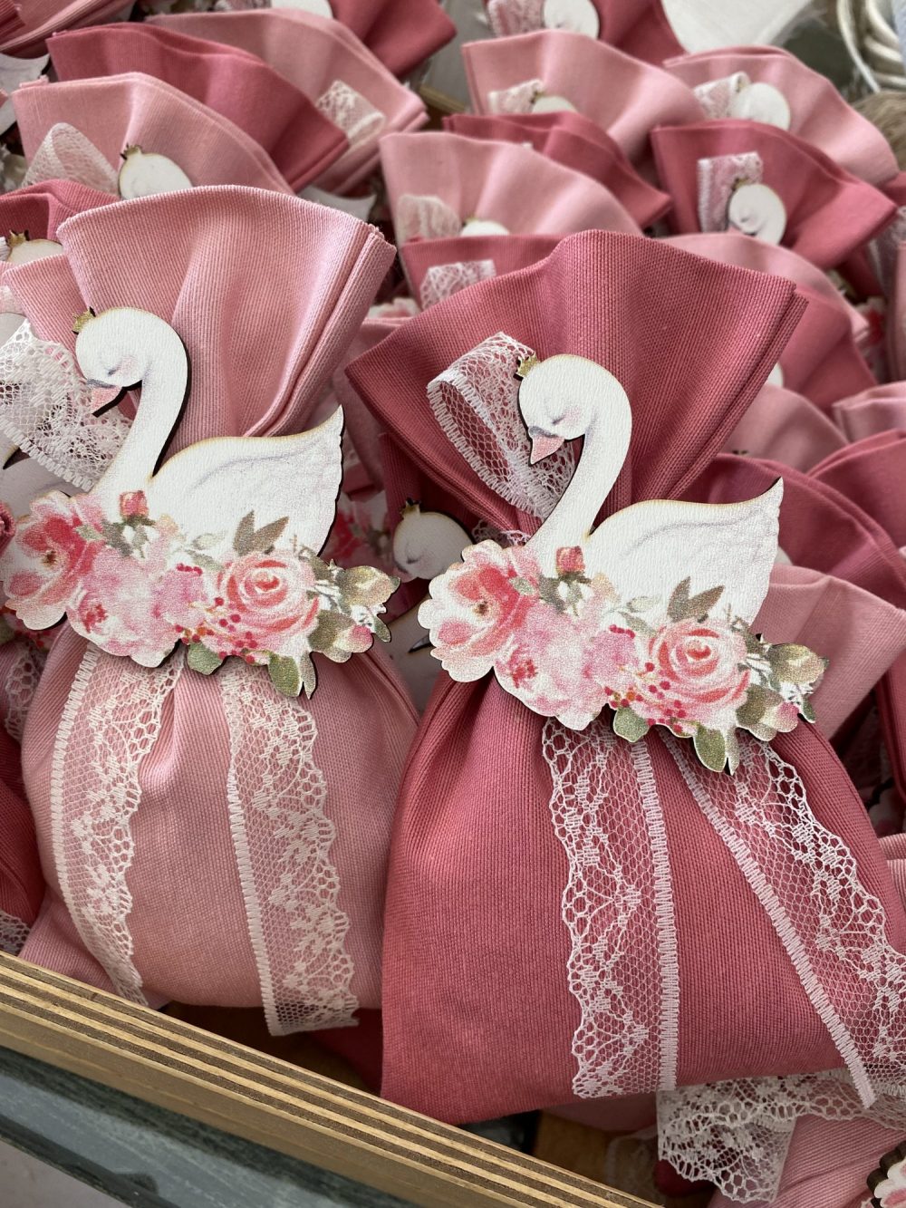 Χειροποίητη μπομπονιέρα βάπτισης με θέμα τον κύκνο