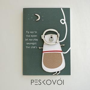 Χειροποίητη ευχετήρια κάρτα αγάπης δύτης με ξύλινες λεπτομέρειες.