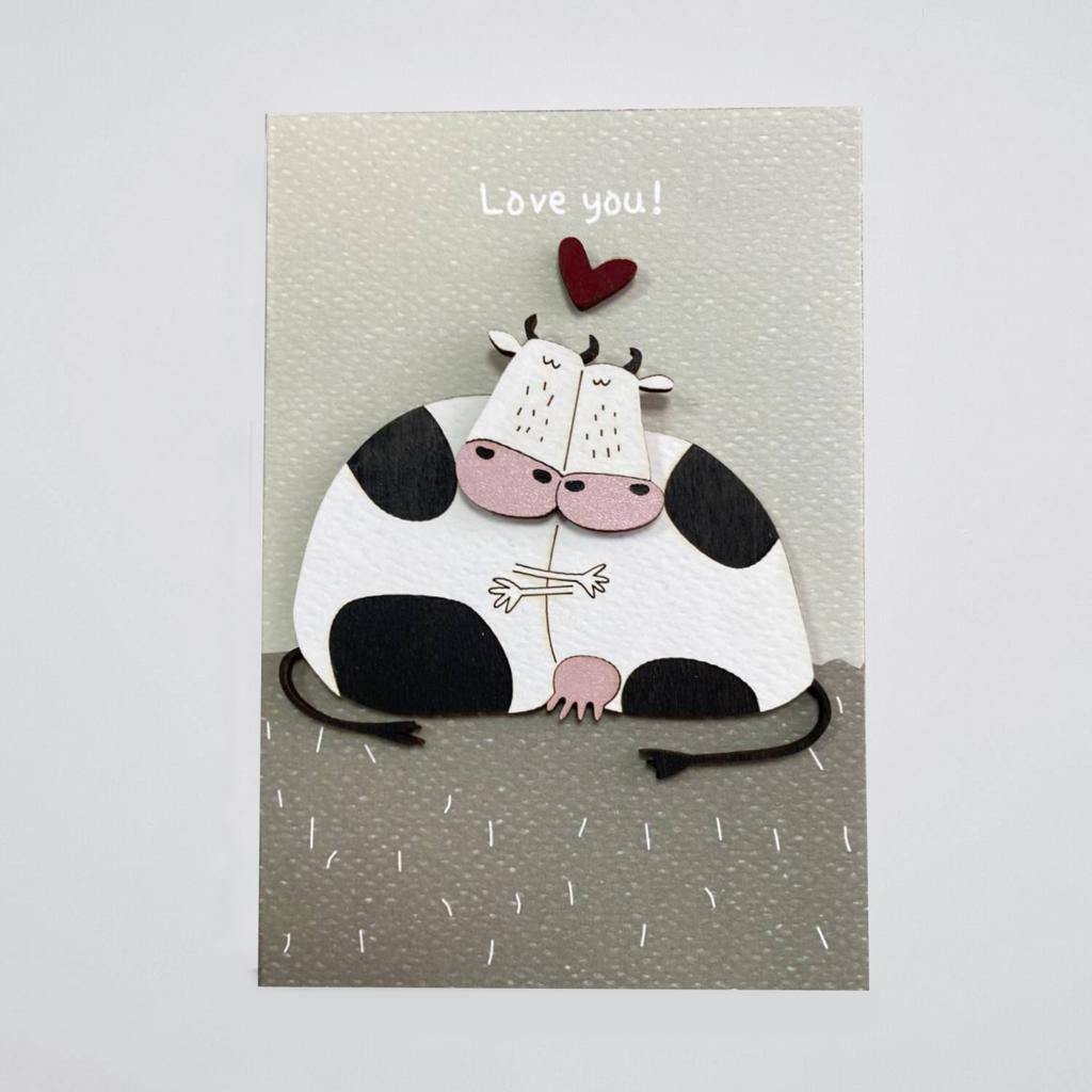 Χειροποίητη ευχετήρια κάρτα με αγελάδες love you