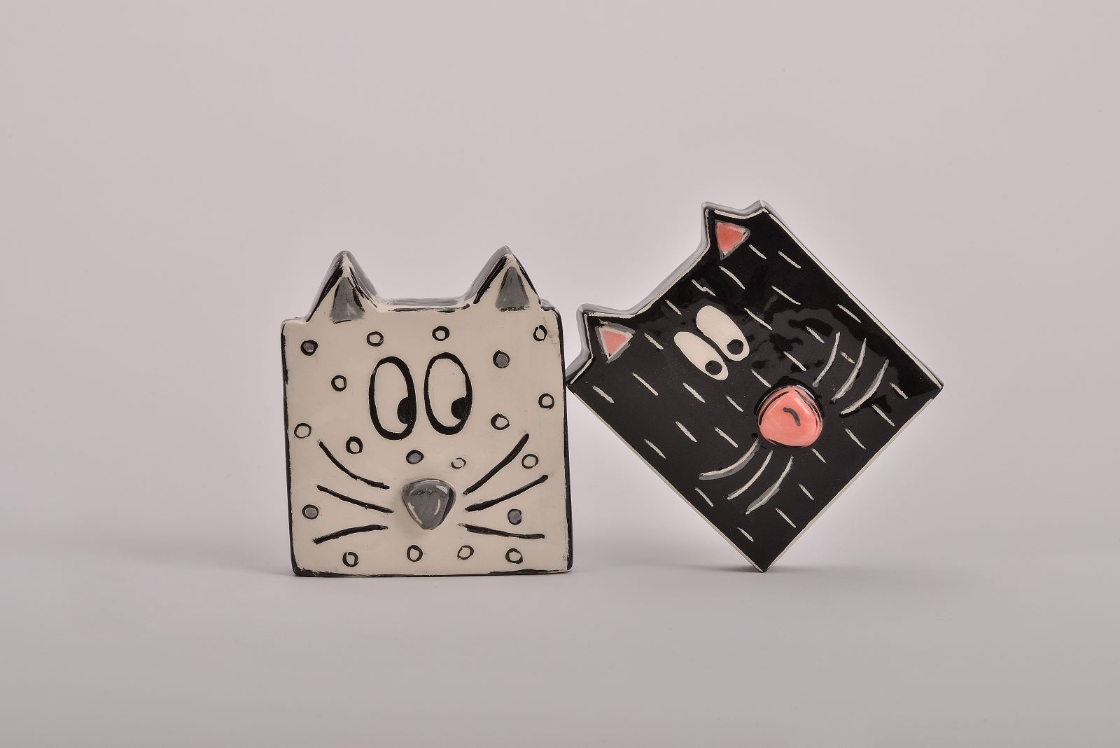 Χειροποίητο κεραμικό διακοσμητικό γατούλα σε λευκό και μαύρο χρώμα.