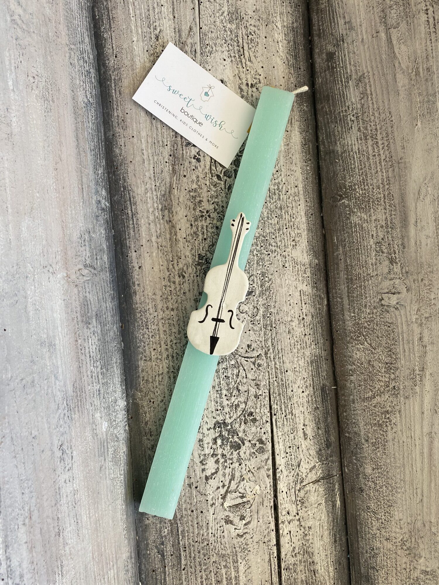 Χειροποίητη Πασχαλινή αρωματική λαμπάδα με ζωγραφισμένο πήλινο βιολί.