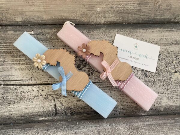 Χειροποίητη πασχαλινή αρωματική λαμπάδα με έγκυο σε γαλάζιο ή ροζ χρώμα.
