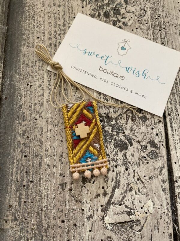 Χειροποίητο boho μαρτυρικό κρεμαστό με ξύλινο σταυρουδάκι.