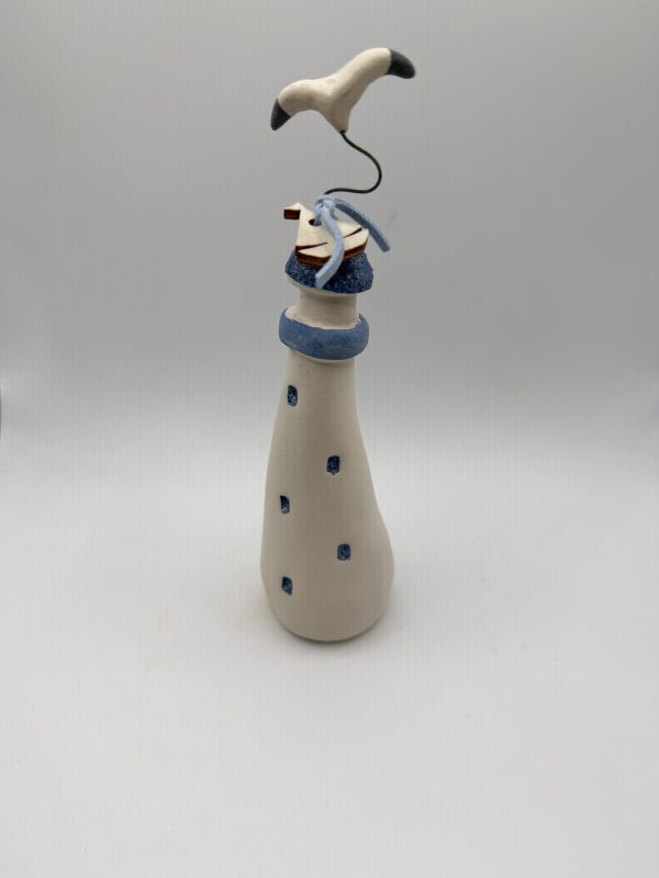 Χειροποίητο κεραμικό διακοσμητικό φάρος με γλάρο, ιδανικό για καλοκαιρινή και ναυτική διακόσμηση σπιτιού, εξοχικού ή διακόσμηση βάπτισης.