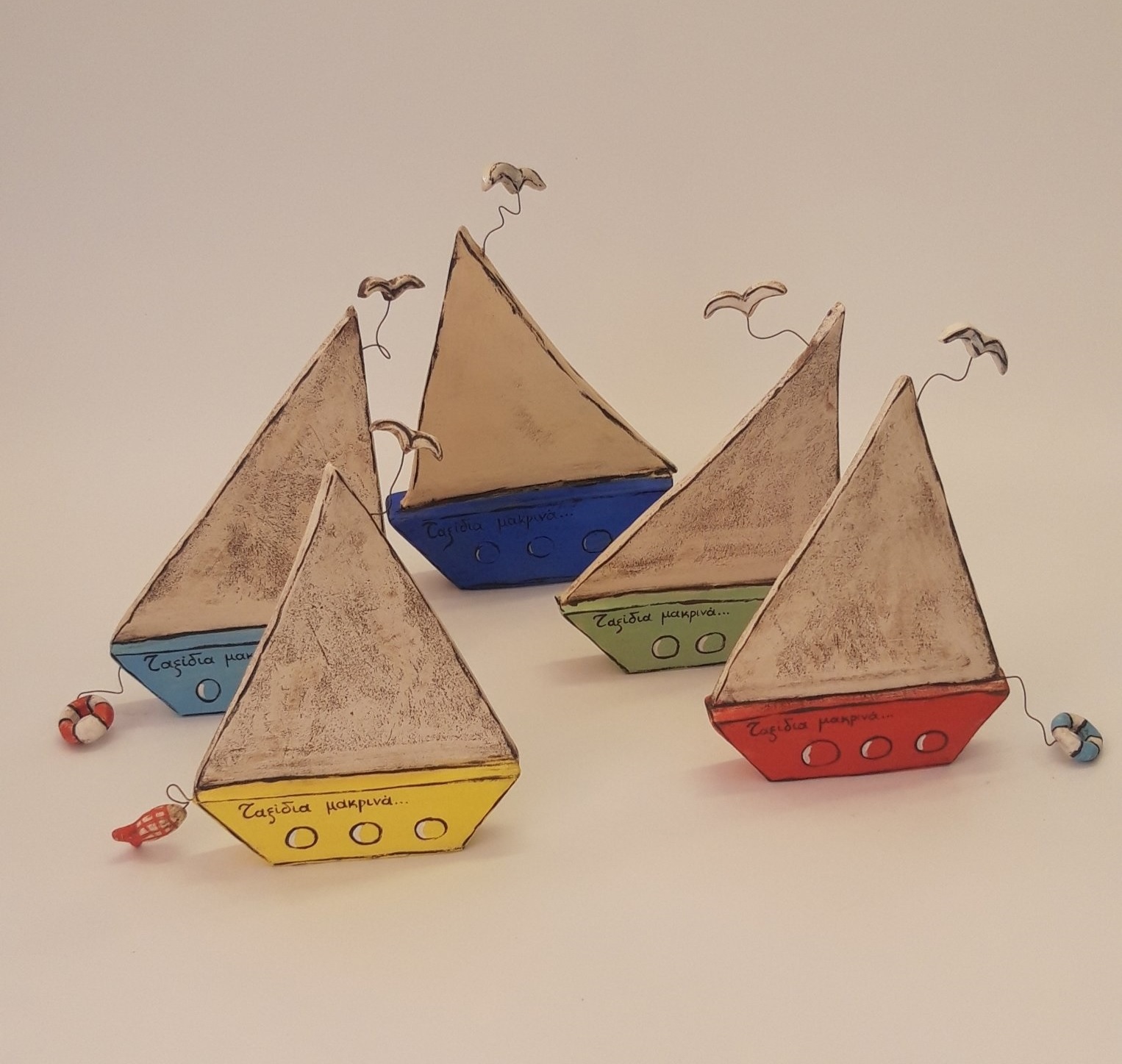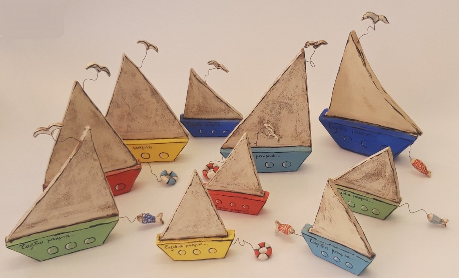 Χειροποίητο κεραμικό διακοσμητικό καραβάκι