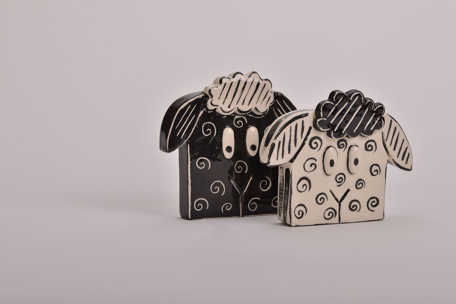 Χειροποίητο κεραμικό διακοσμητικό προβατάκι σε λευκό και μαύρο χρώμα.