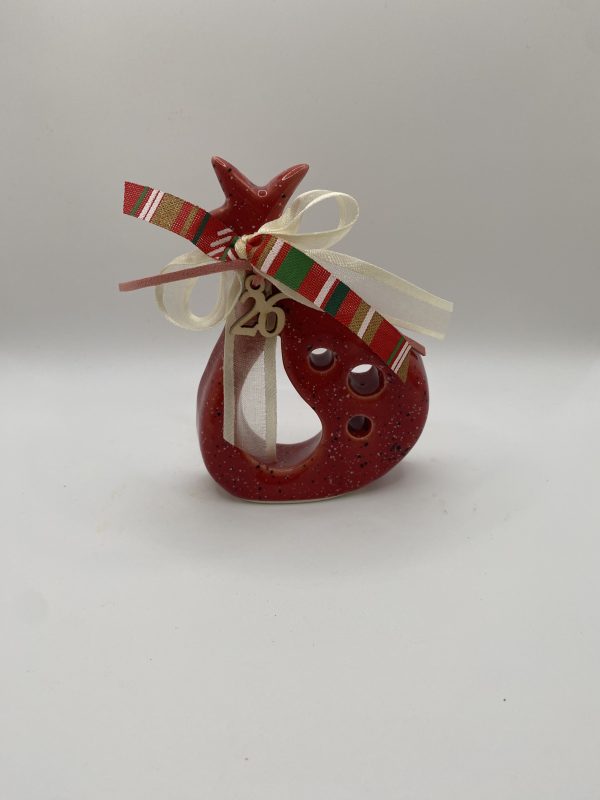 Χειροποίητο κεραμικό επιτραπέζιο γούρι ρόδι σε κόκκινο χρώμα.