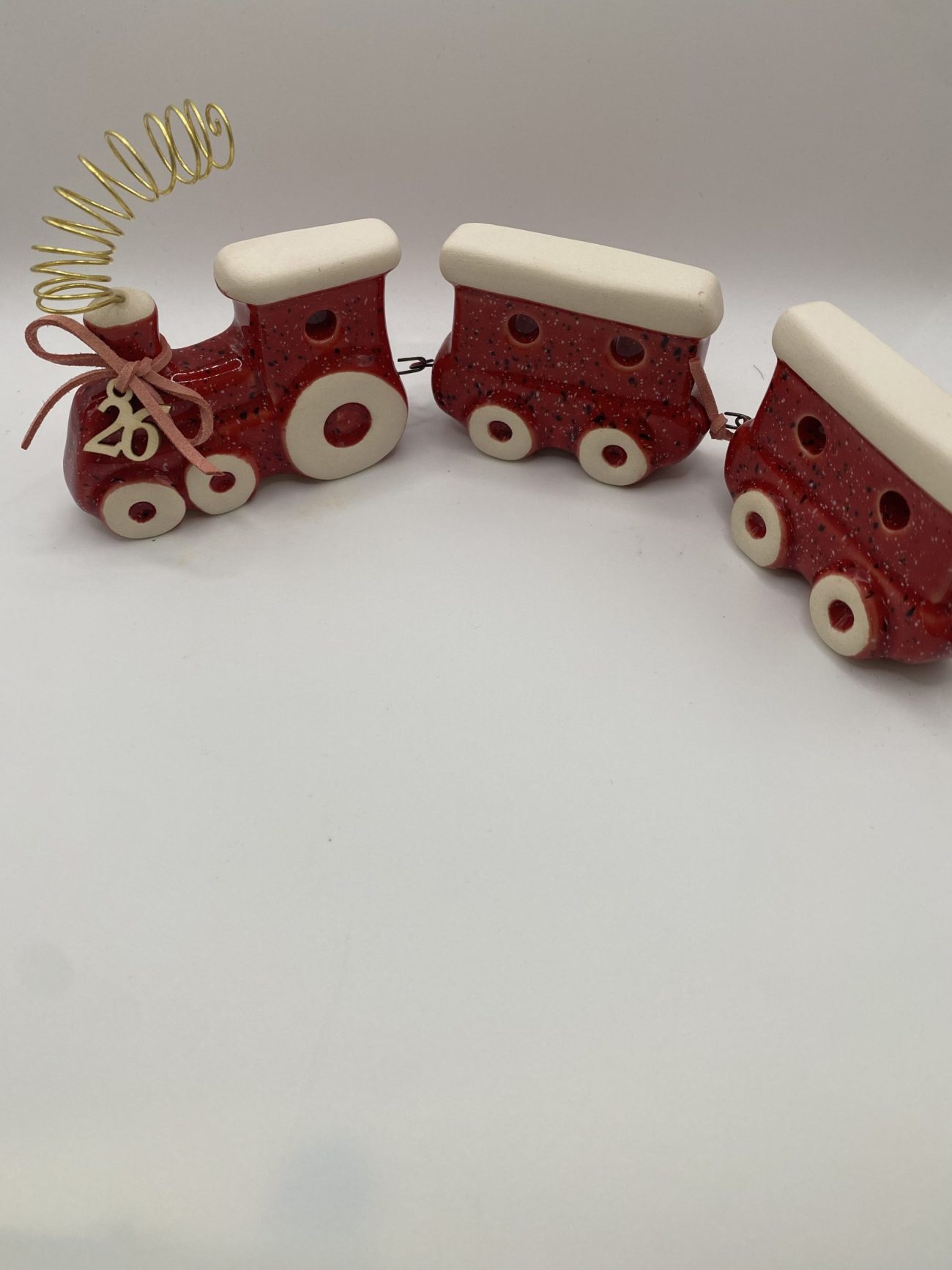 Χειροποίητο κεραμικό επιτραπέζιο γούρι τρενάκι σε κόκκινο χρώμα.