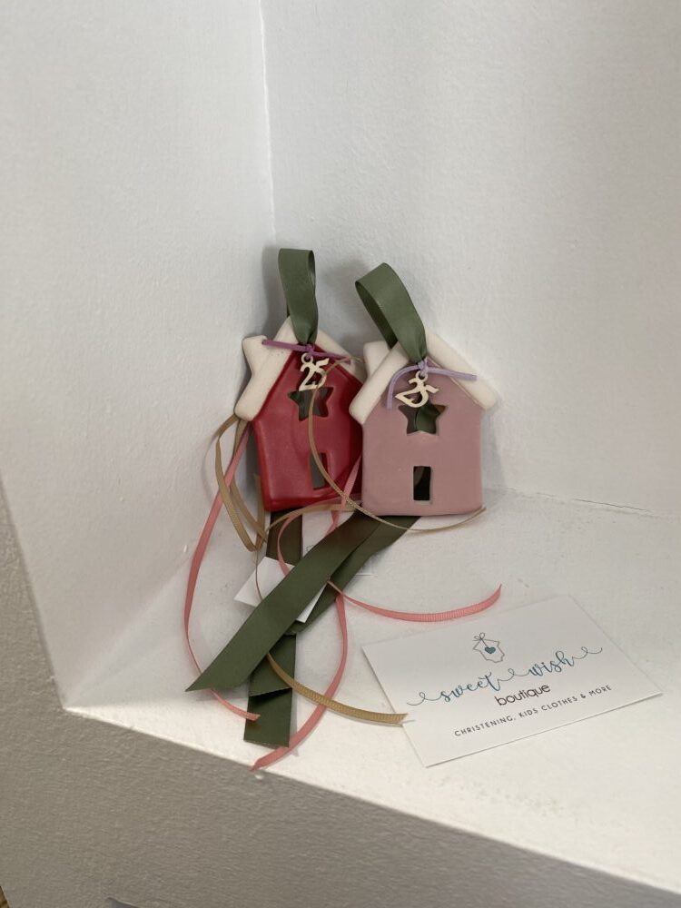 Χειροποίητο κρεμαστό κεραμικό γούρι σπιτάκι