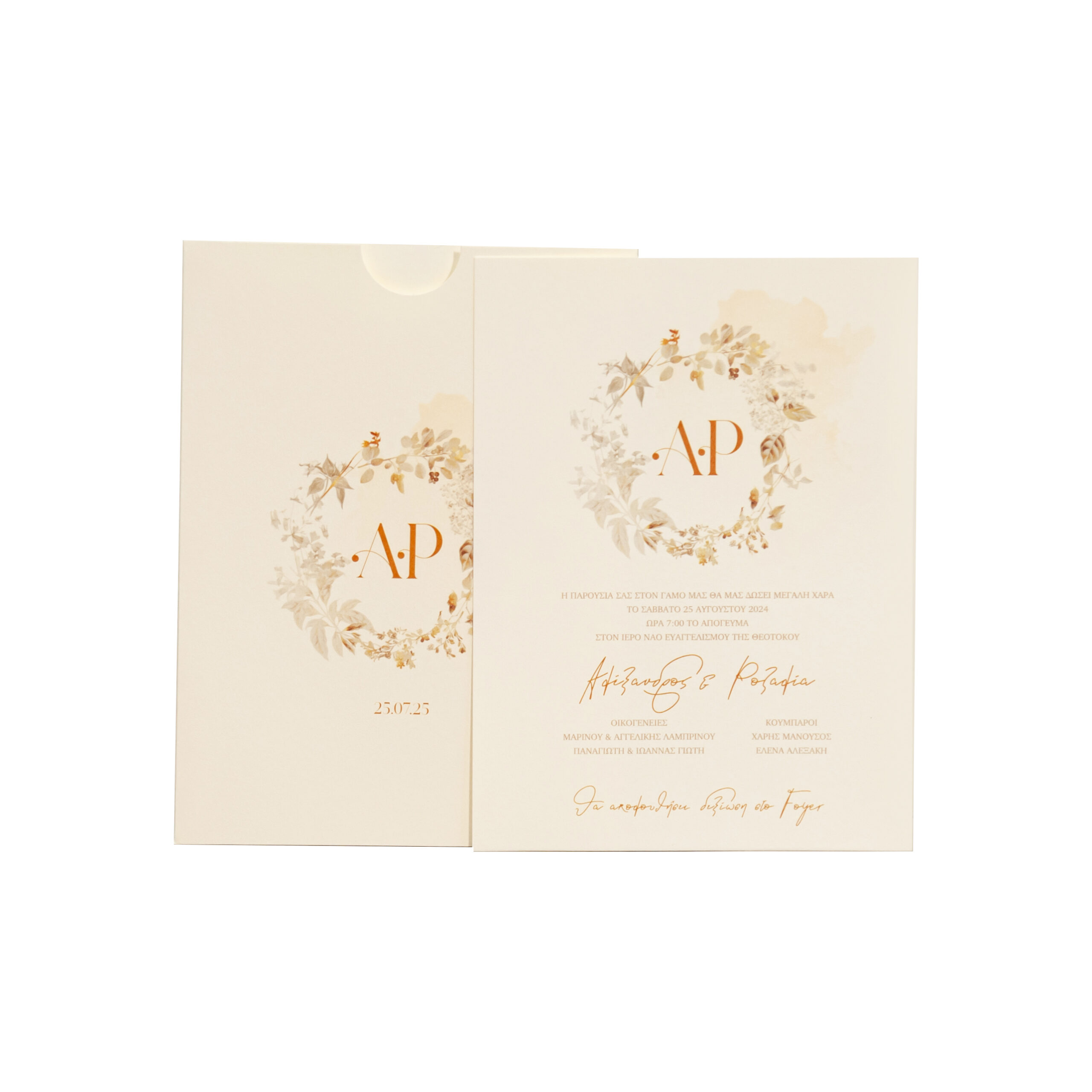 Προσκλητήριο γάμου με στεφανάκι.