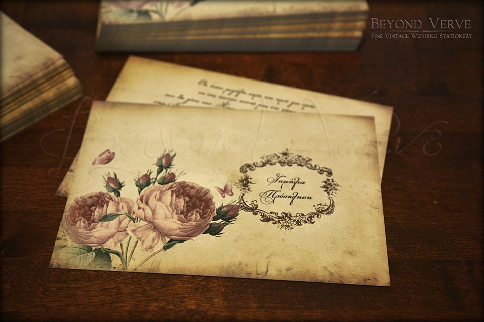 Χειροποίητο προσκλητήριο γάμου με τριαντάφυλλα τύπου cart postale σε χαρτί 300 γρ.