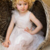 Η Dafni είναι ένα εκρού βαπτιστικό φόρεμα με πουά ανάγλυφο τούλι.