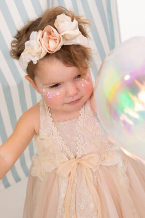 Το Thalia Bambolino είναι ένα εντυπωσιακό βαπτιστικό φόρεμα που ξεχωρίζει για τη ρομαντική του αισθητική και την προσεγμένη λεπτομέρεια στην κατασκευή. Σε φίνα εκρού απόχρωση και με ανάλαφρη γραμμή, το Thalia συνδυάζει εκλεπτυσμένη κεντημένη δαντέλα, απαλό τούλι και υφάσματα υψηλής ποιότητας που προσφέρουν άνεση και ελευθερία κινήσεων σε κάθε μικρή κυρία την ημέρα της βάπτισης.
