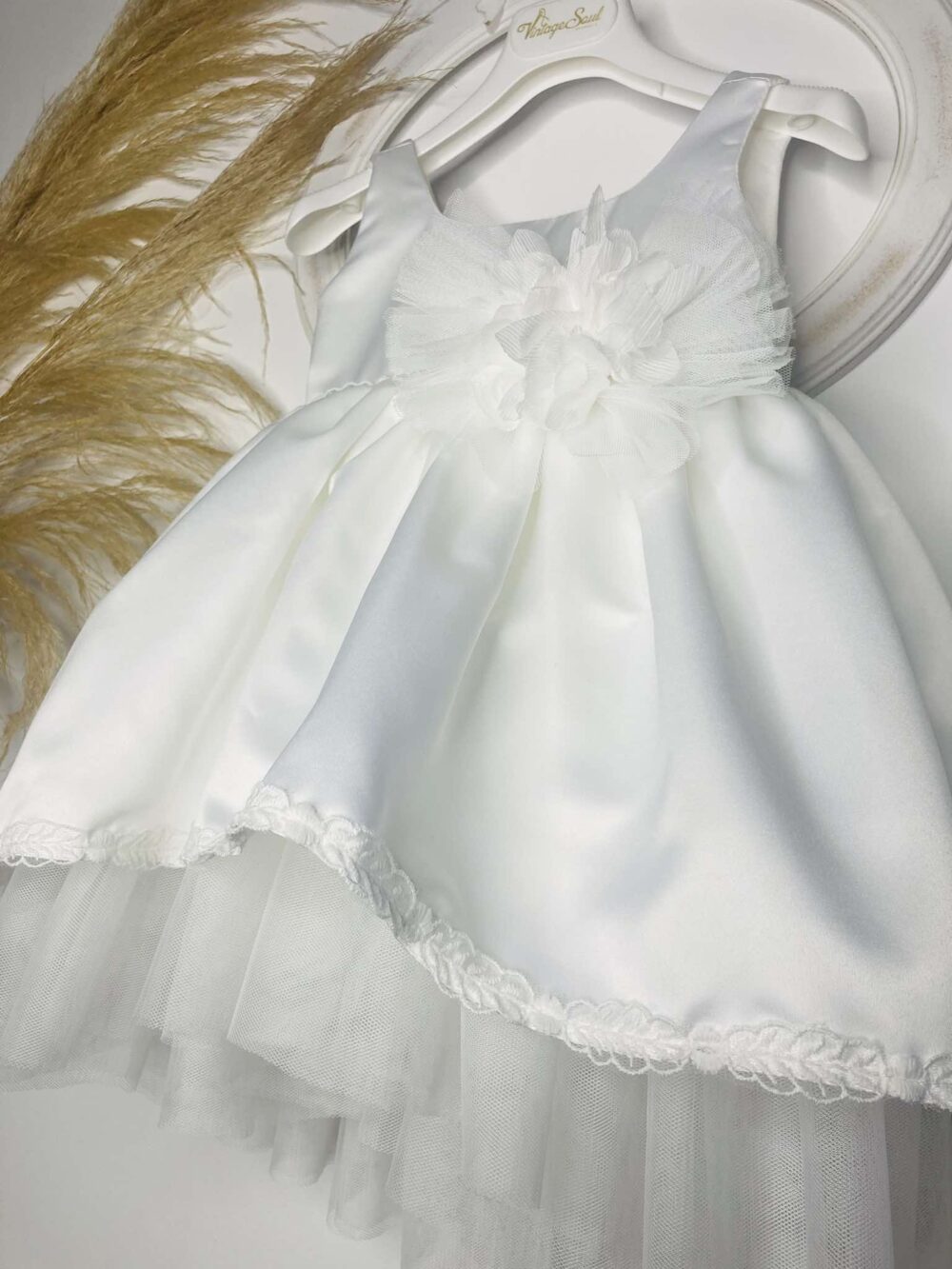 Χειροποίητο βαπτιστικό φόρεμα σατέν σε χρώμα off white Vintage soul