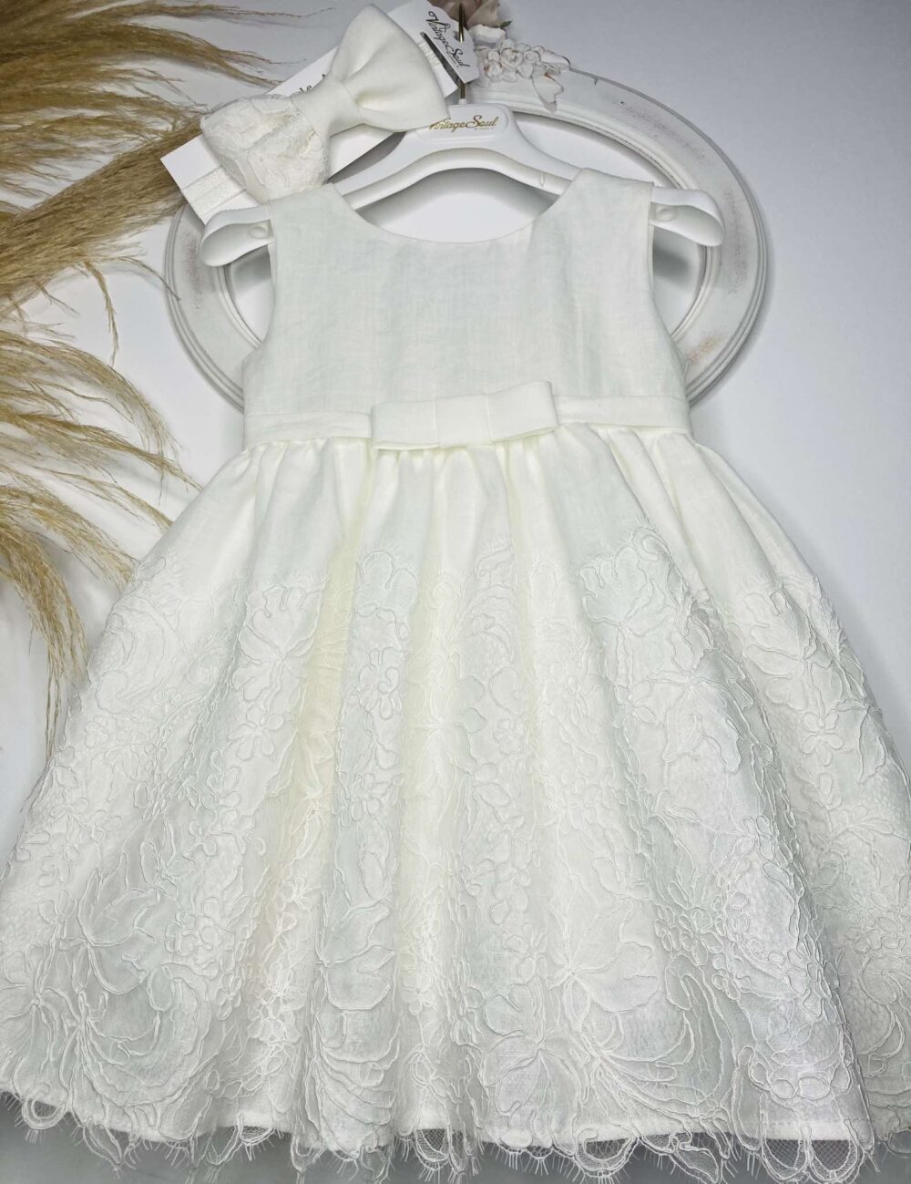 Χειροποίητο βαπτιστικό φόρεμα λινό Vintage soul DS25003