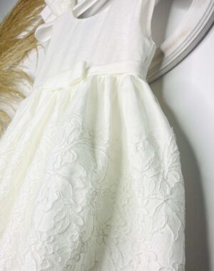 Ζωνάκι λινό με φιόγκο στην μέση και τελείωμα στην φούστα από κορδονέ γαλλική δαντέλα .
