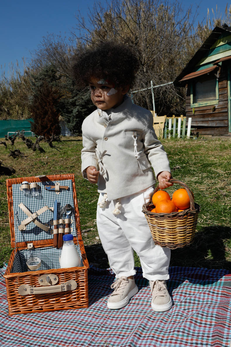 Ο Ruben είναι το απόλυτο μοντέρνο κοστούμι σε μπεζ και εκρού χρωματισμούς. Μπεζ σακάκι από 100% βαμβακερή ψάθα Ιταλίας. Πουκάμισο εκρού linetta 100%. Παντελόνι εκρού 100% lino Ιταλίας. Φουλάρι soft touch 100% cotton με printed σχέδιο. Ζώνη πλεξούδα με κορδόνι. Καπέλο λευκό με τρέσσα μπεζ.