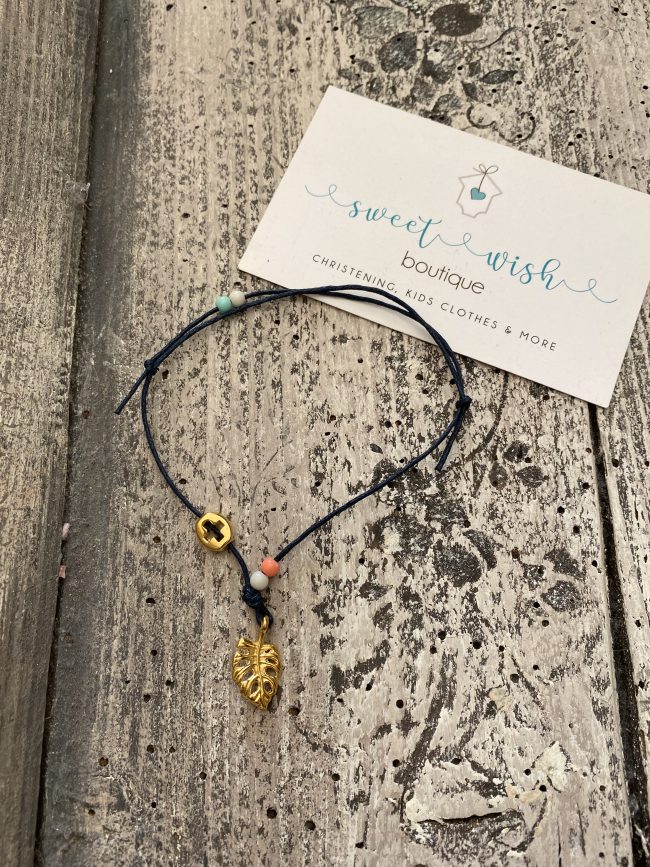 Χειροποίητο βραχιολάκι με χρυσό σταυρό και φυλλαράκι.