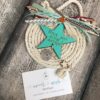 Χειροποίητο Χριστουγεννιάτικο γούρι με γαλάζιο στριφτή κορδέλα και ξύλινο διακοσμητικό στο καλύτερο νονό.