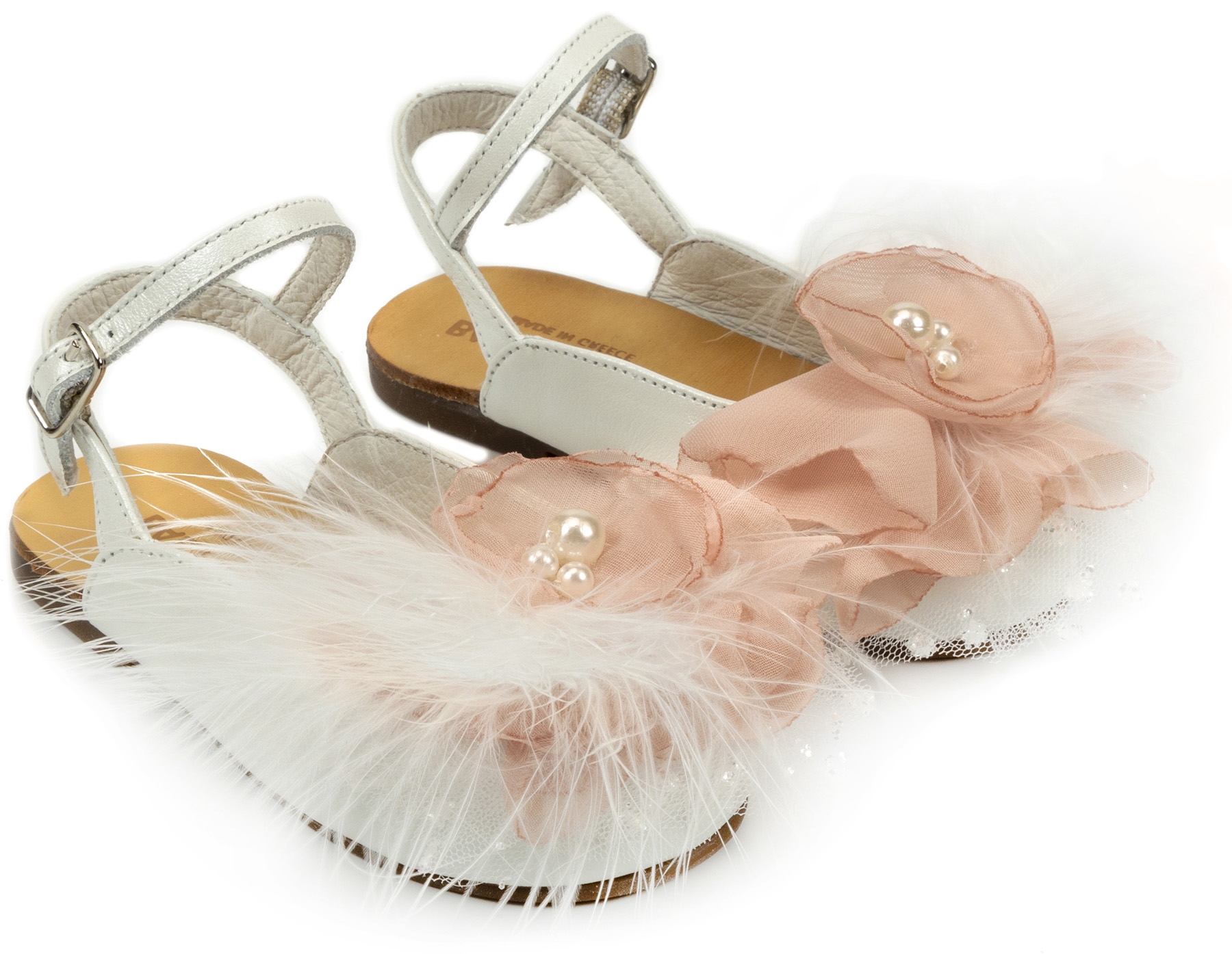 Δερμάτινο Σαμπό babywalker με Χειροποίητο Λουλούδι EXC5772 Εκρού-Ροζ σε νούμερα 19-26.