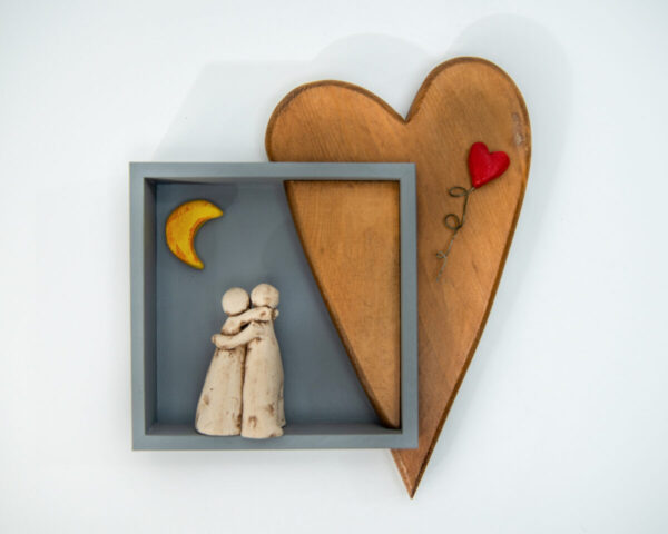 Επιτοίχια ξύλινη καρδιά σε κάδρο με κεραμικά στοιχεία αγάπης.