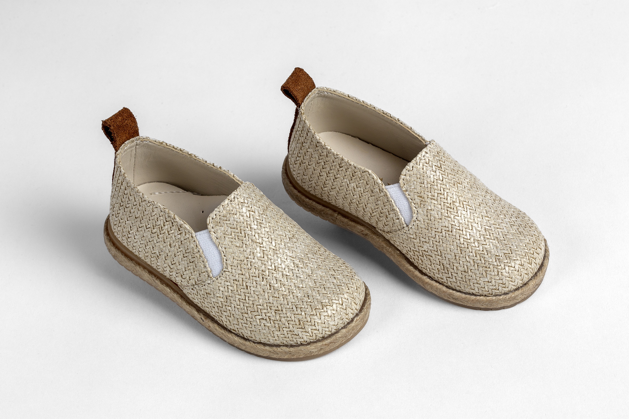 Εσπαντρίγια περπατήματος σε εκρού ψάθα και ταμπά δέρμα everkid Α530Ε.