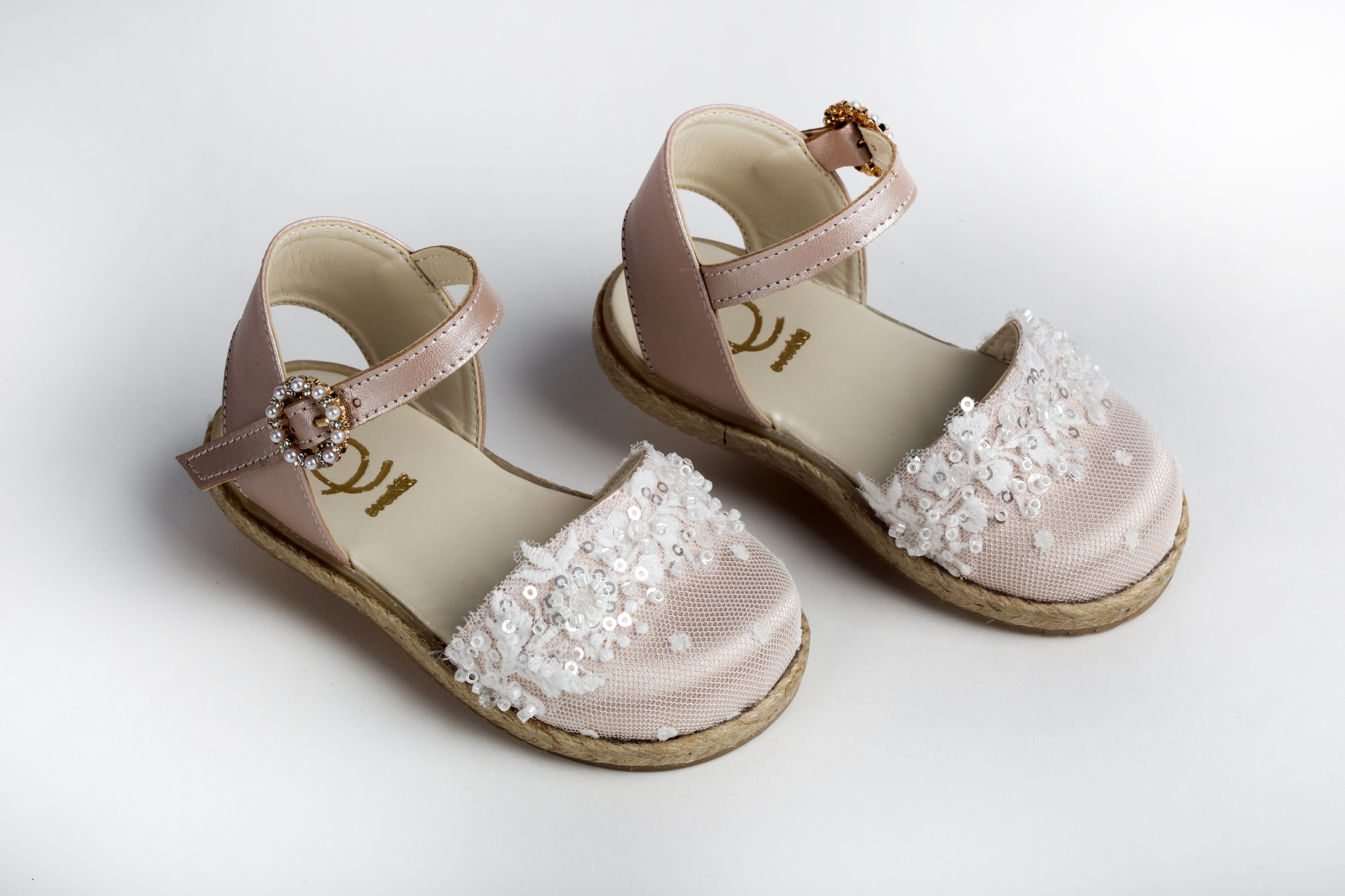 Εσπαντρίγια σε ροζ σατέν και ροζ δέρμα everkid Κ556Ρ